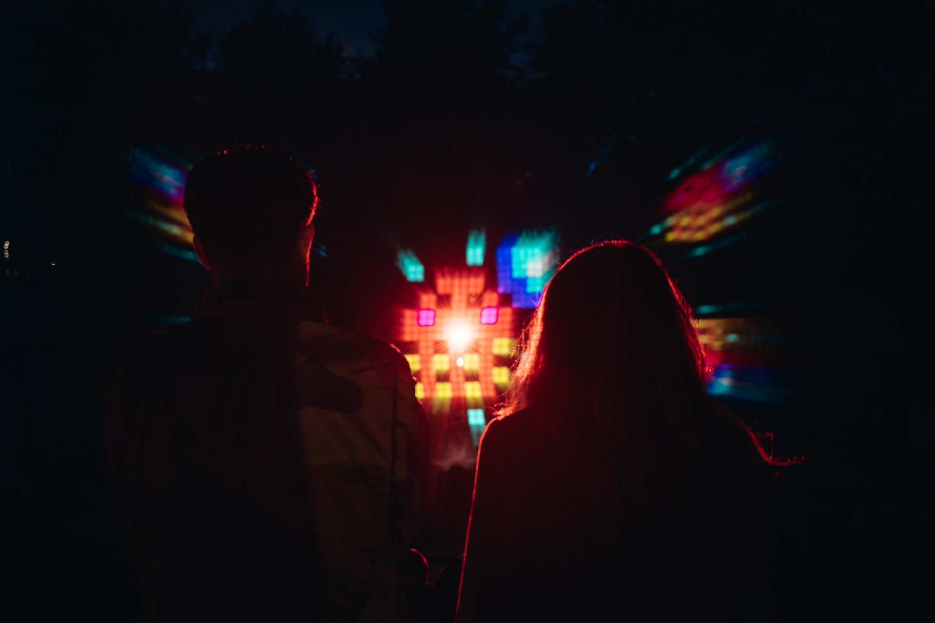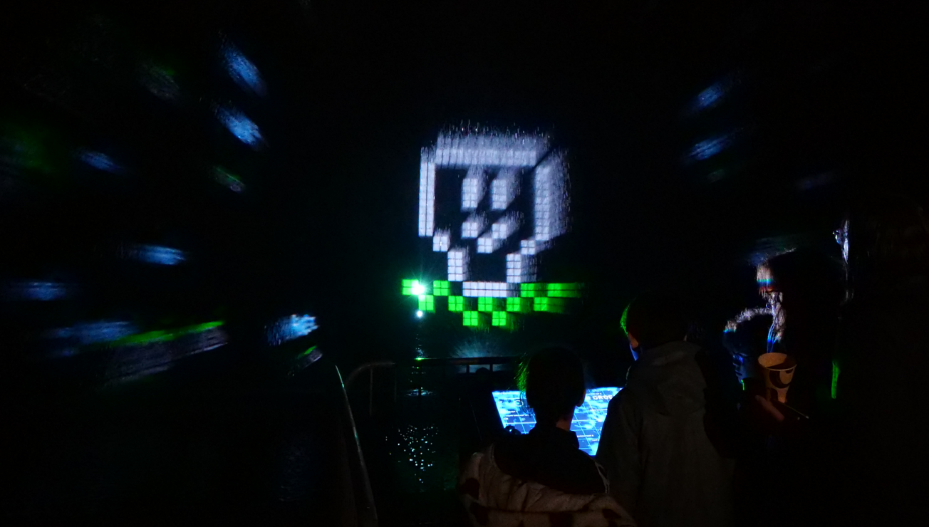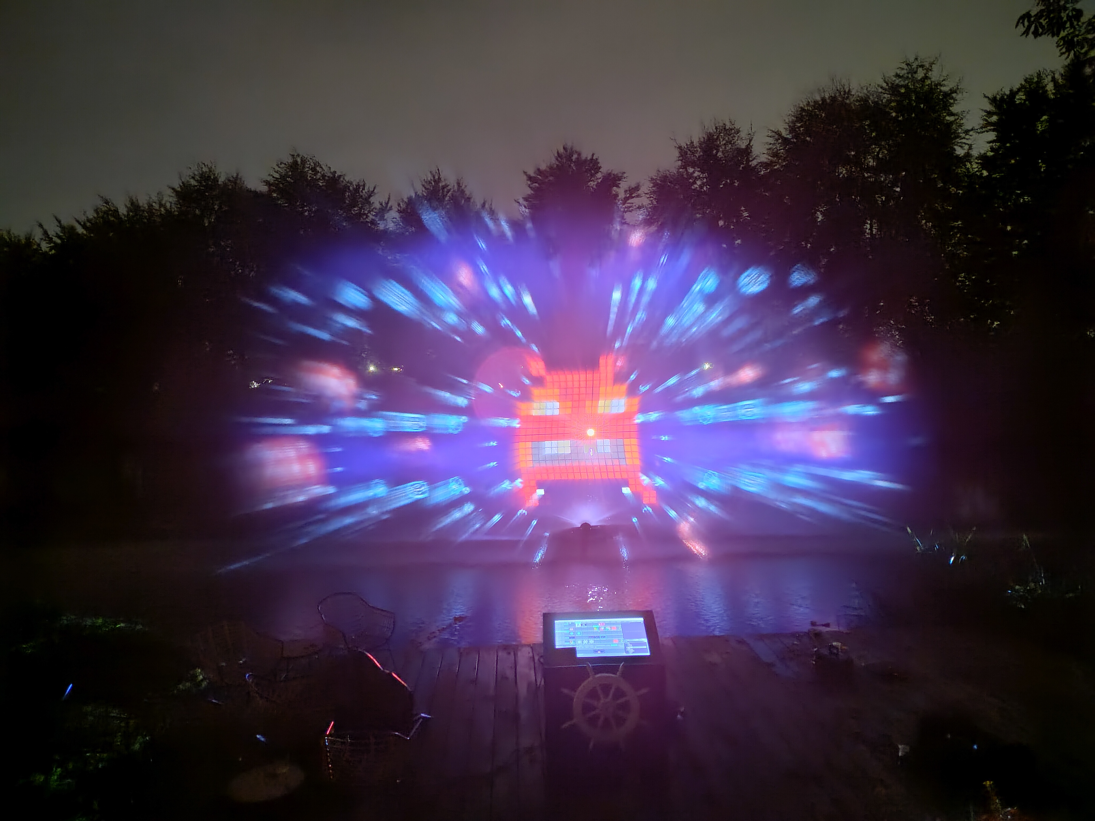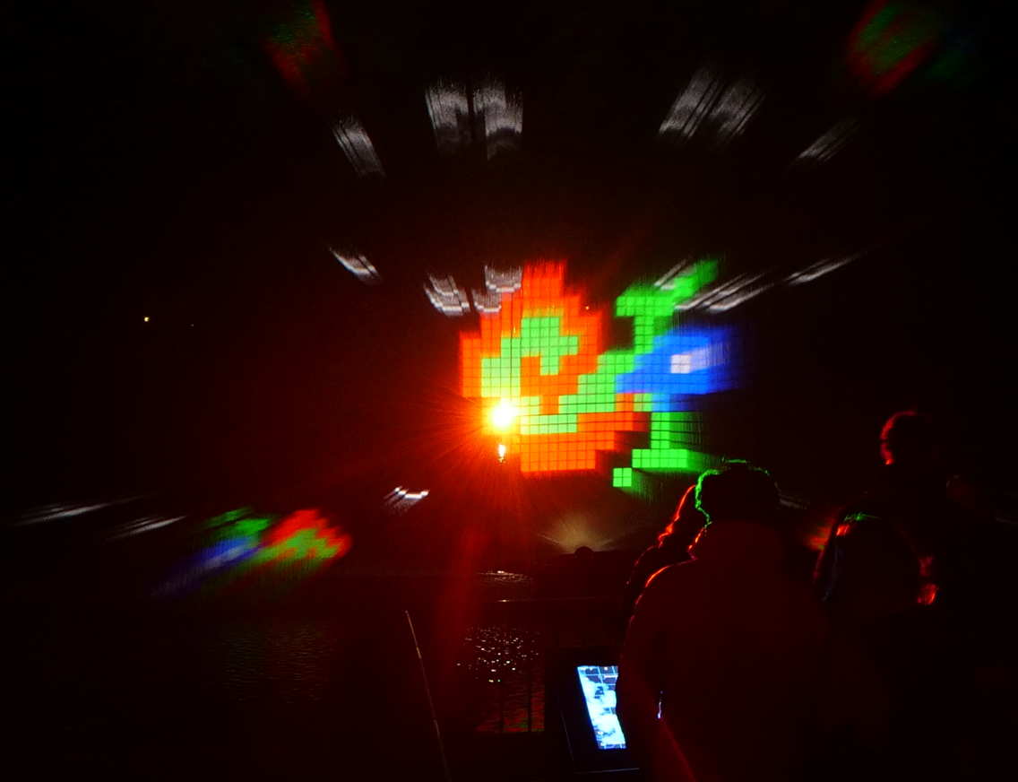 For VONK Festival we created an outdoor installation showcasing over 5000 little Pixel Plankton animations created in workshops with group 7/8 students at the schools in and around Houten, where the exhibition took place. With an interactive cruise controller the vistitors navigated projections on a large fountain, discovering a virtual ocean. The fantastic creatures made by the students were inspired on planktonic marine life, in an education program with examples and research in the classroom developed by Meester Pixel using our Lichtpuntjes workshop program.